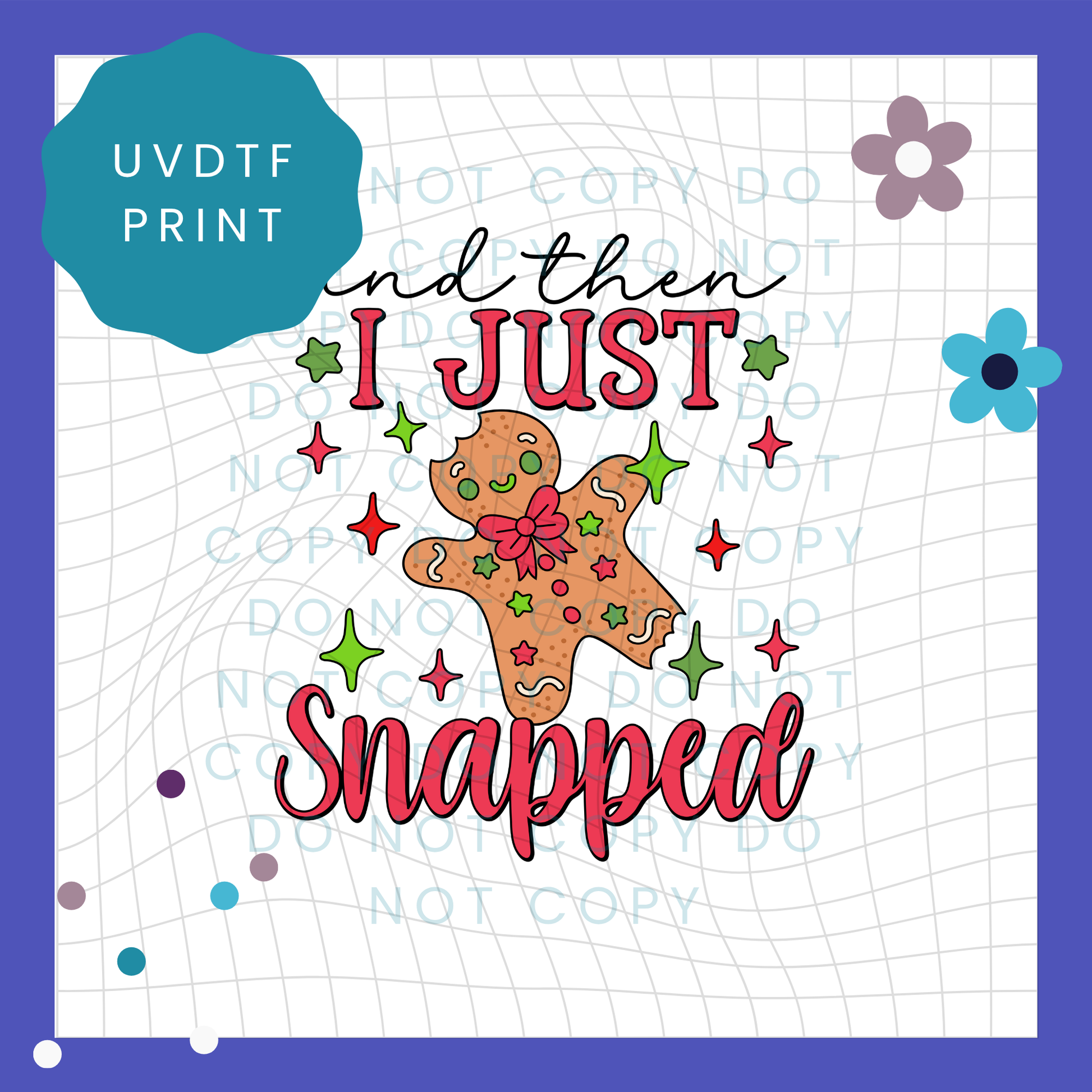 And Then I Just Snapped Gingerbread Man UVDTF Transfer 4000