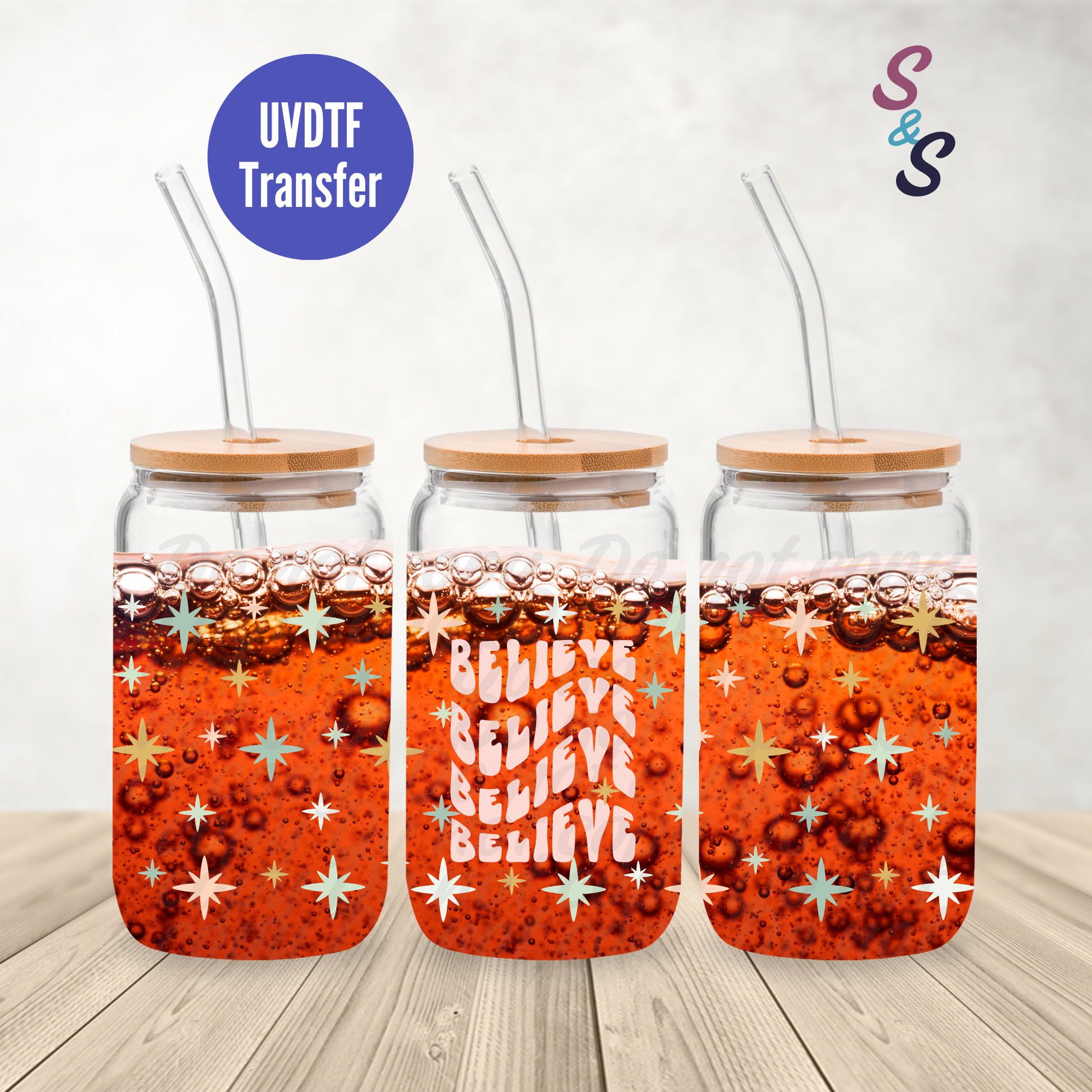 Believe Christmas UVDTF Transfer 16 Oz Glass Can Wrap E100