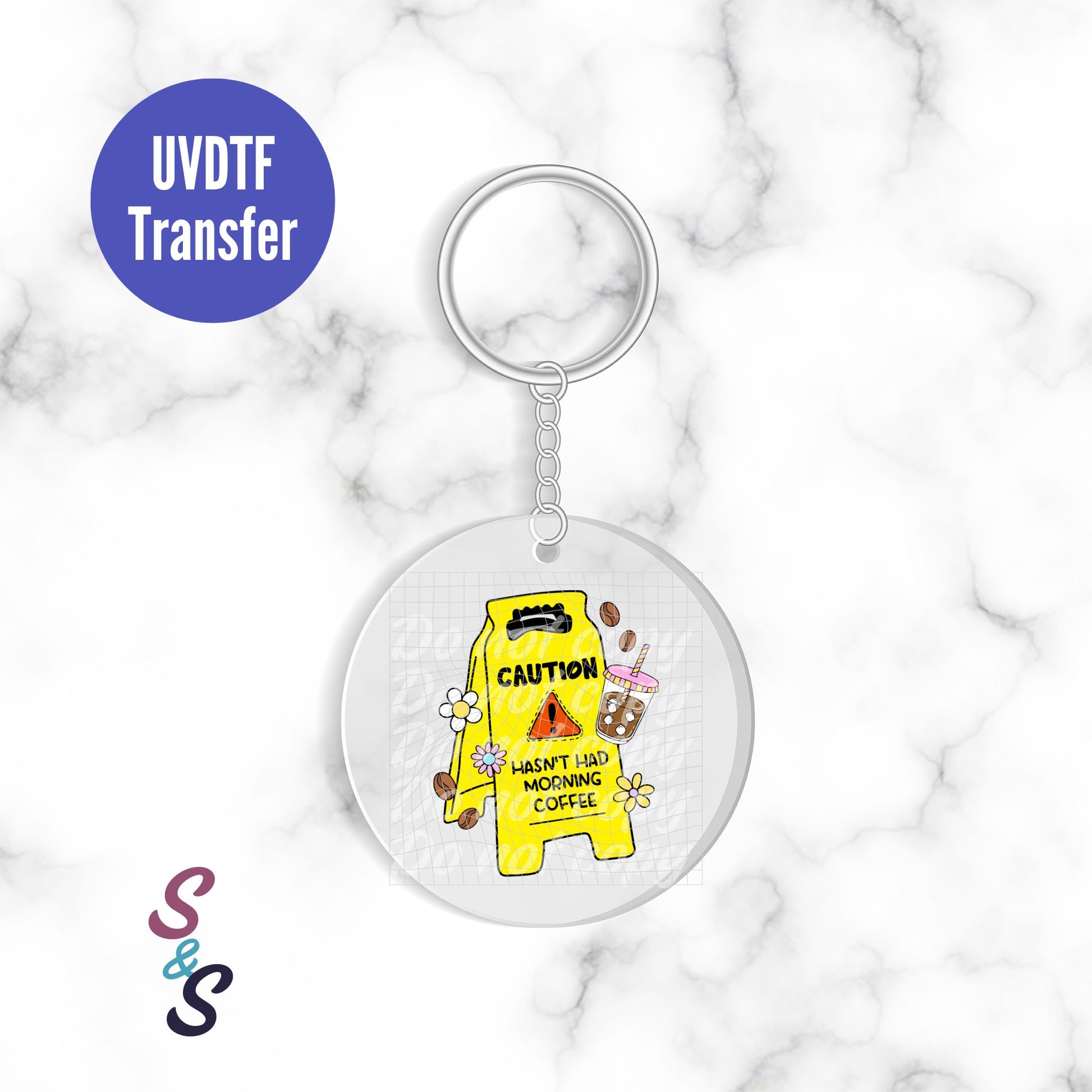 Caution Sign Hasn't Had Morning Coffee Keychain UVDTF Transfer KC295