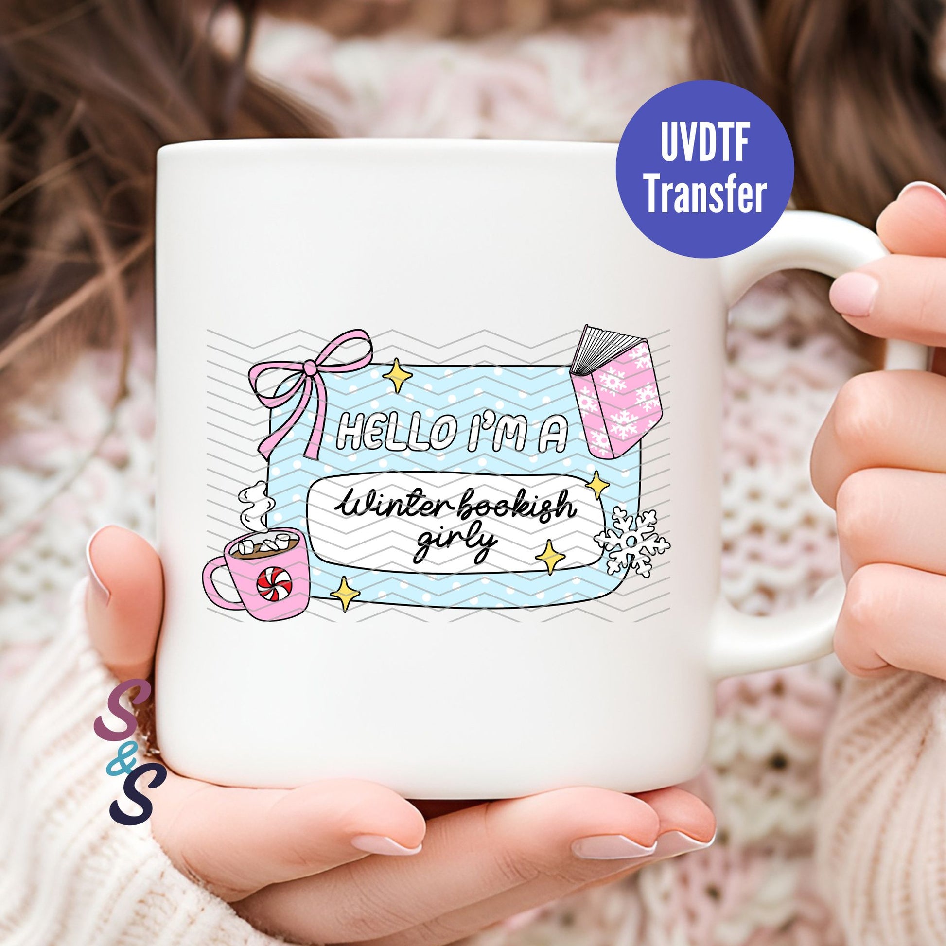 Hello I'm A Winter Bookish Girly Name Tag Mug UVDTF Transfer G110