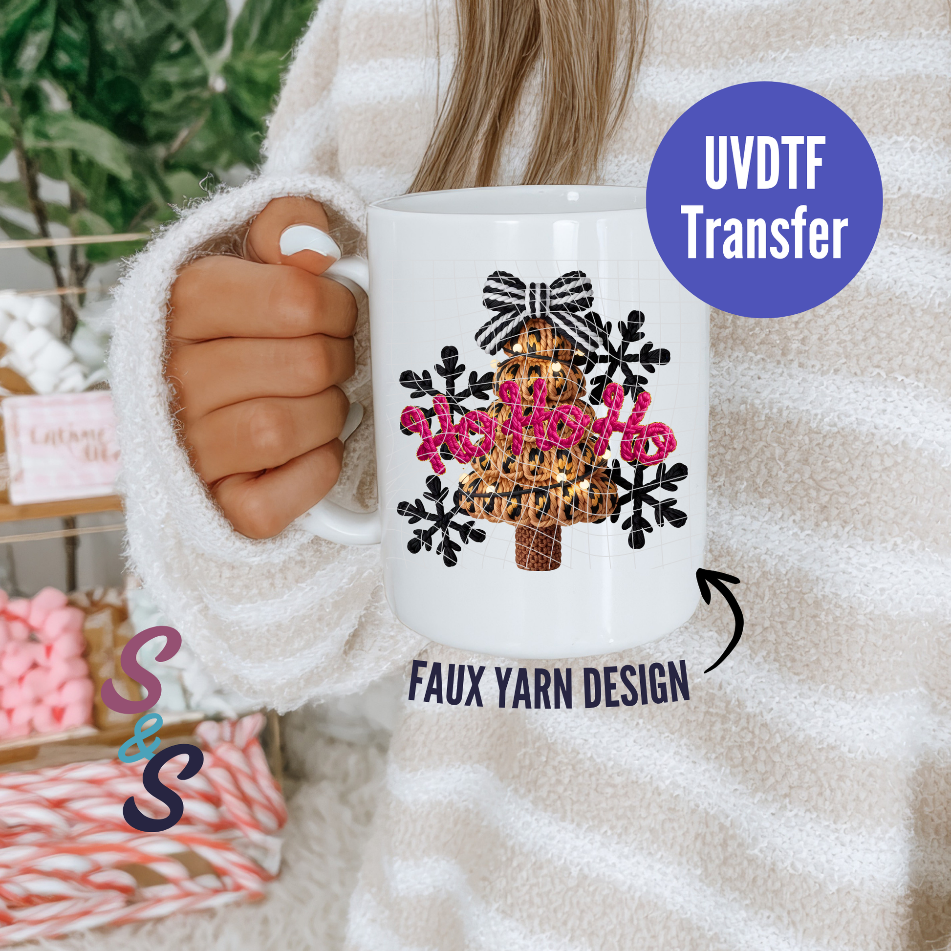 Ho Ho Ho Christmas Tree Faux Yarn Mug UVDTF Transfer