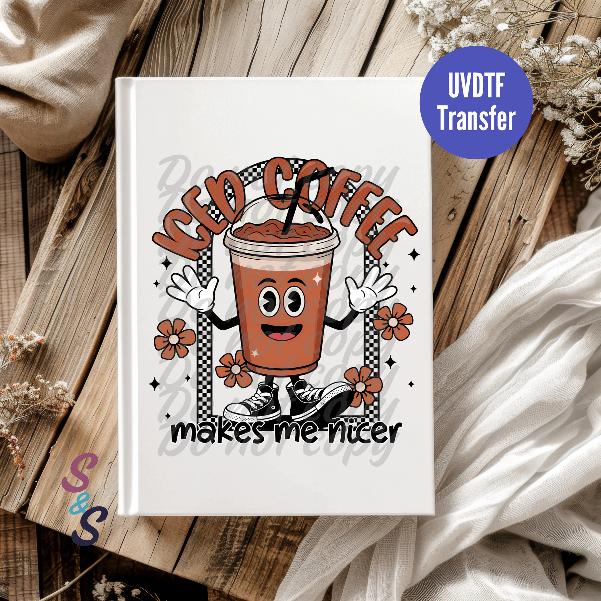 Iced Coffee Makes Me Nicer UVDTF Book/Notebook Transfer C138