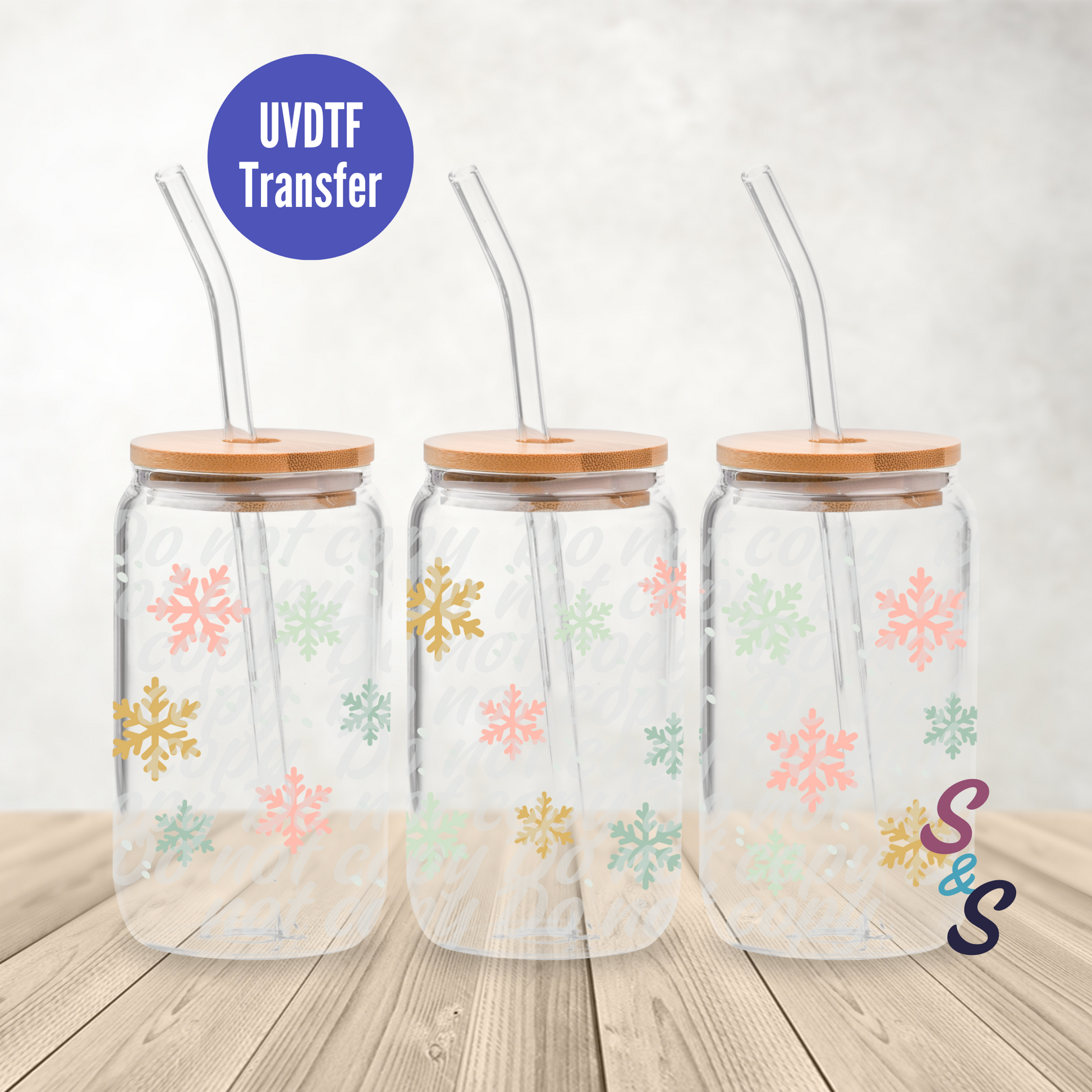 Pastel Snowflakes UVDTF Transfer 16 Oz Glass Can Wrap E121