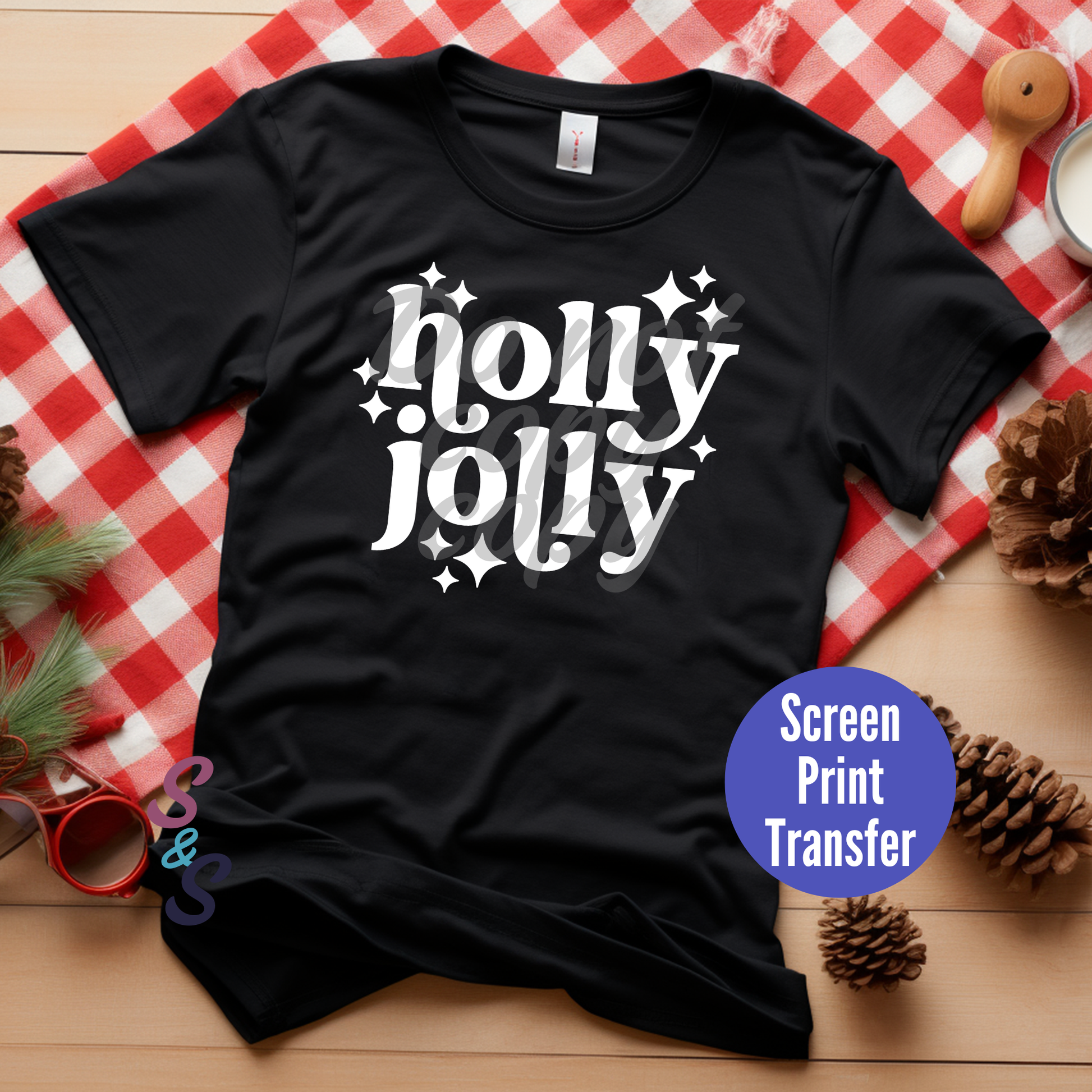 Holly Jolly - White Ink - Screen Print Transfer SC058