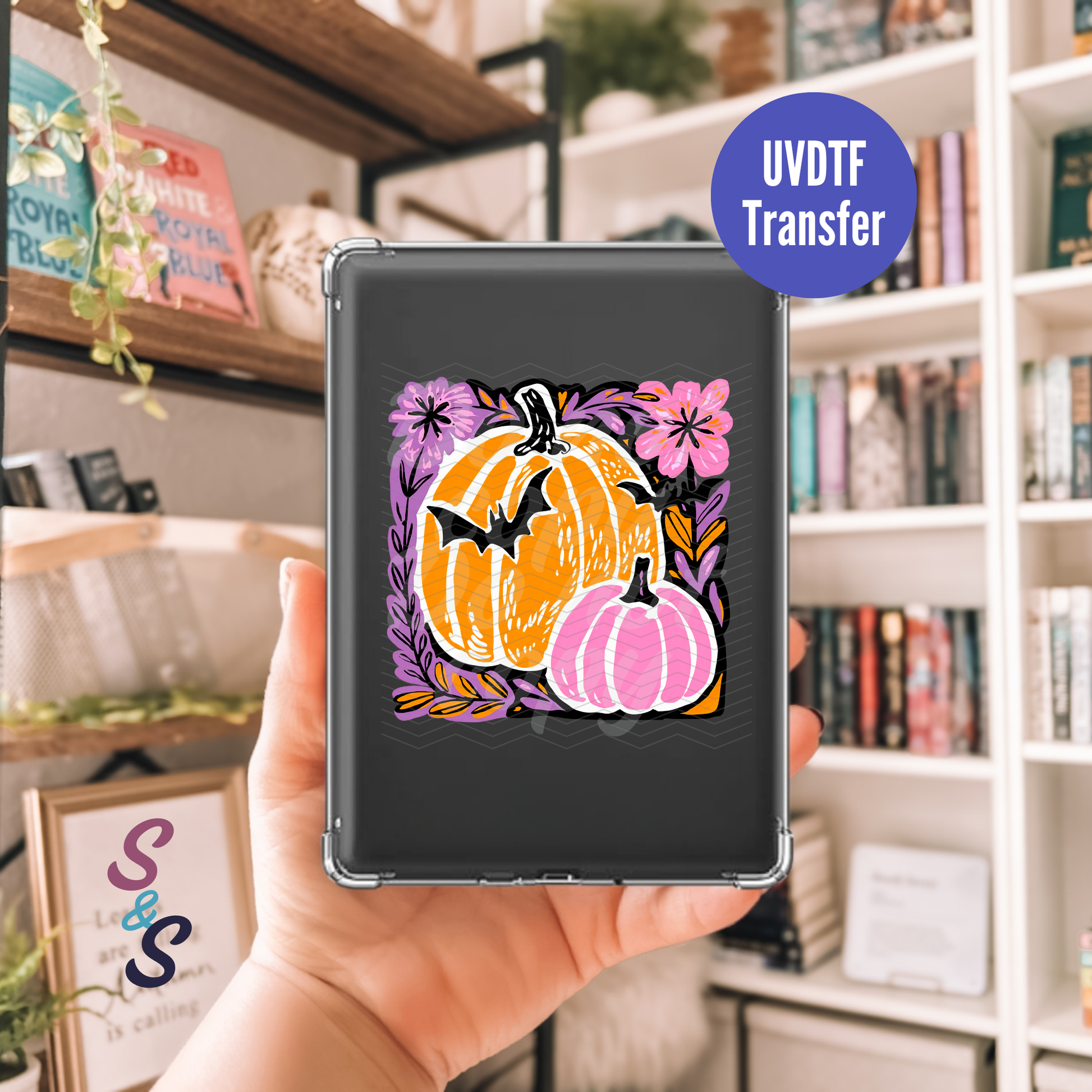 Pumpkin & Bats Tile Kindle UVDTF Transfer K102